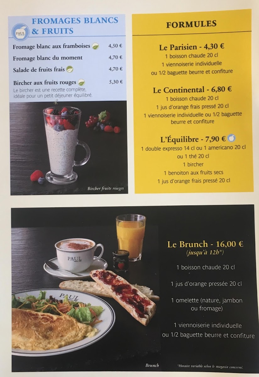 PAUL Amboise Menu